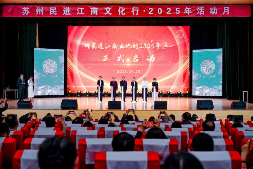 4月28日,苏州民进2025年“江南文化行活动月”开幕式在苏州大学隆重举行。苏州大学党委副书记邓敏,中共苏州市委统战部副部长黄志勇,苏州大学党委常委、统战部部长黄志斌,民进江苏省委会副主委、民进苏州市委会主委钱振明,市各民主党派领导,市教育局、市民政局、市文广旅局、市社科院、西浦智库、苏州新华书店等相关单位的领导出席活动。