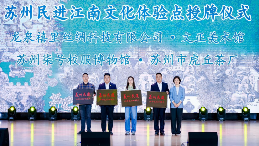 活动现场,“苏州柒号校服博物馆”作为2025年新增的四个“江南文化体验点”之一,由民进苏州市委会专职副主委於亚萍正式授牌。这一荣誉,是对我们深耕校服文化、弘扬江南美学的充分肯定!